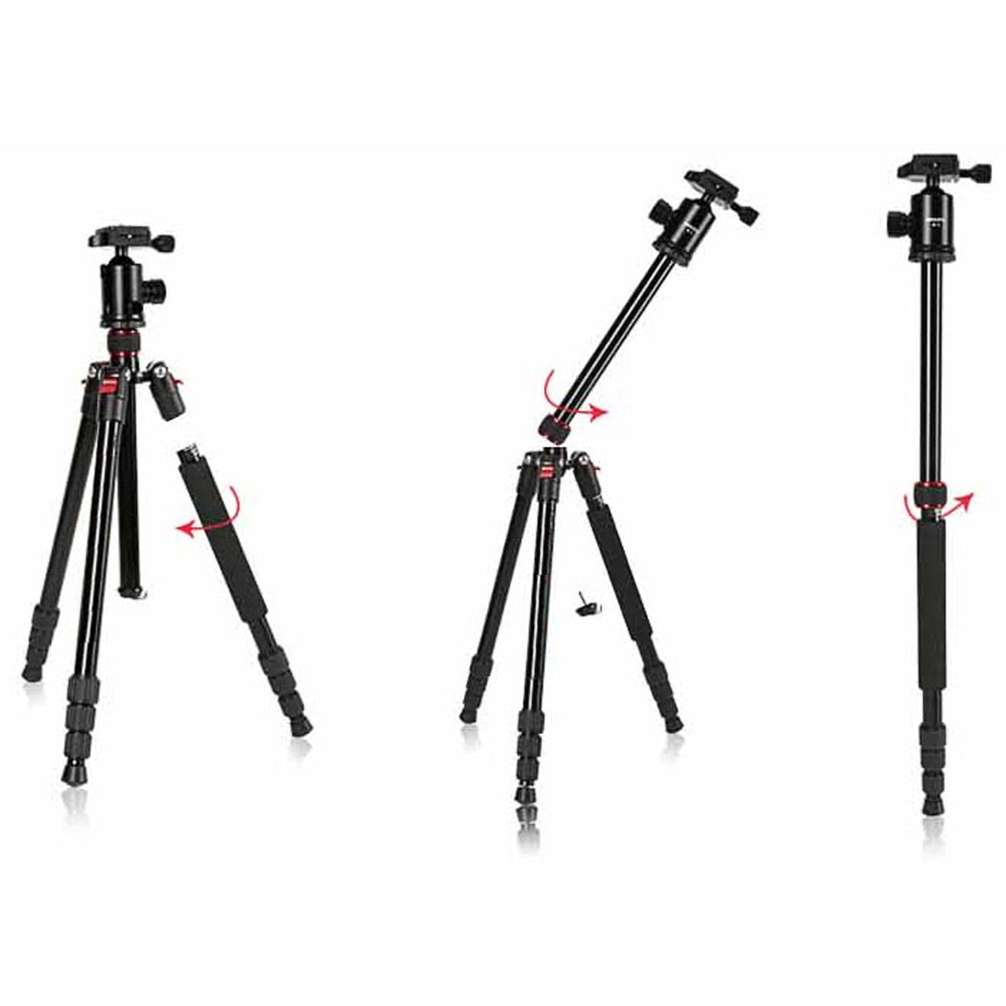 The KamKorda Compact Advanced Tripod can be converted into a monopod by simply removing one of the legs and attaching it to the tripod’s removable center column, making it possible to capture sharp images while working in a tighter footprint. Use the KamKorda Compact Advanced Foldable Tripod Kit with your compact camera, compact system camera, DSLR or video camcorder for perfectly positioned photos wherever you are.